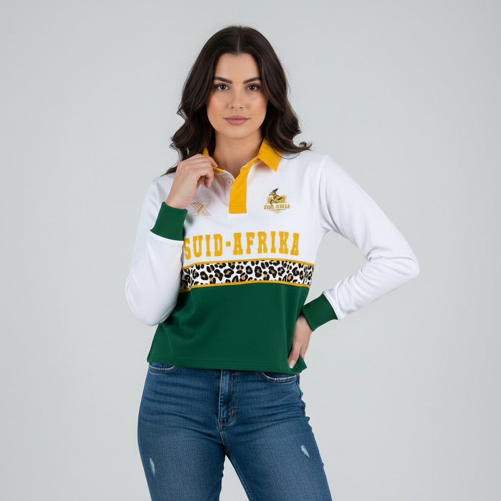 Ladies RUGBY COLLARED SHIRT Leopard Print